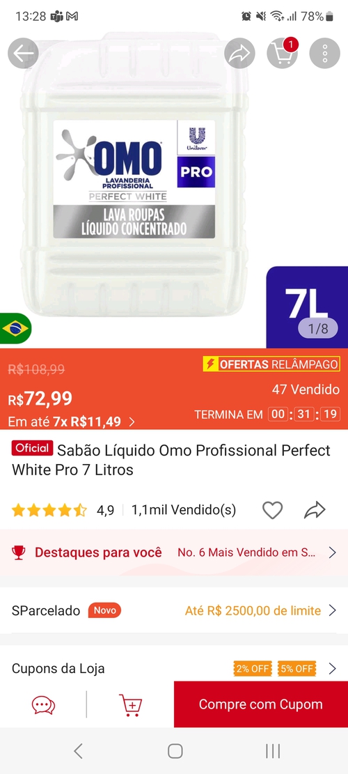 Vlw peguei 16kg de sabão omo por 211,26 acho que saiu melhor que a promo do mercado livre