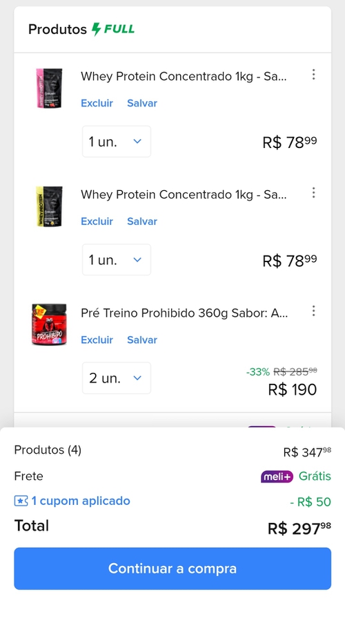 Consegui comprar um whey isolado da dux e uma creatina da integral por 232, valeu.
