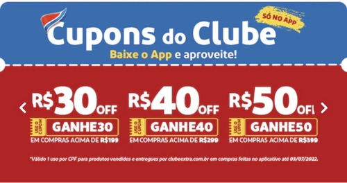 R$50 OFF em compras acima de R$399 com cupom Clube Extra