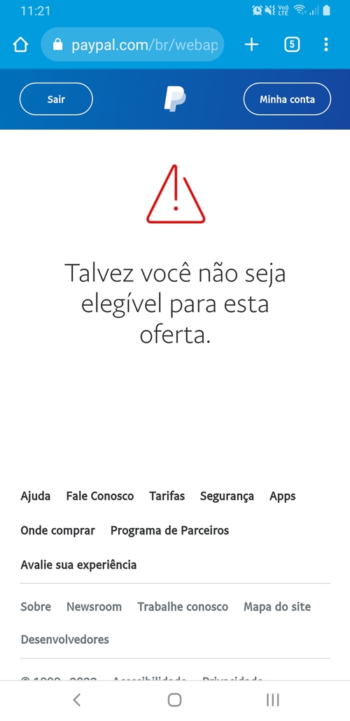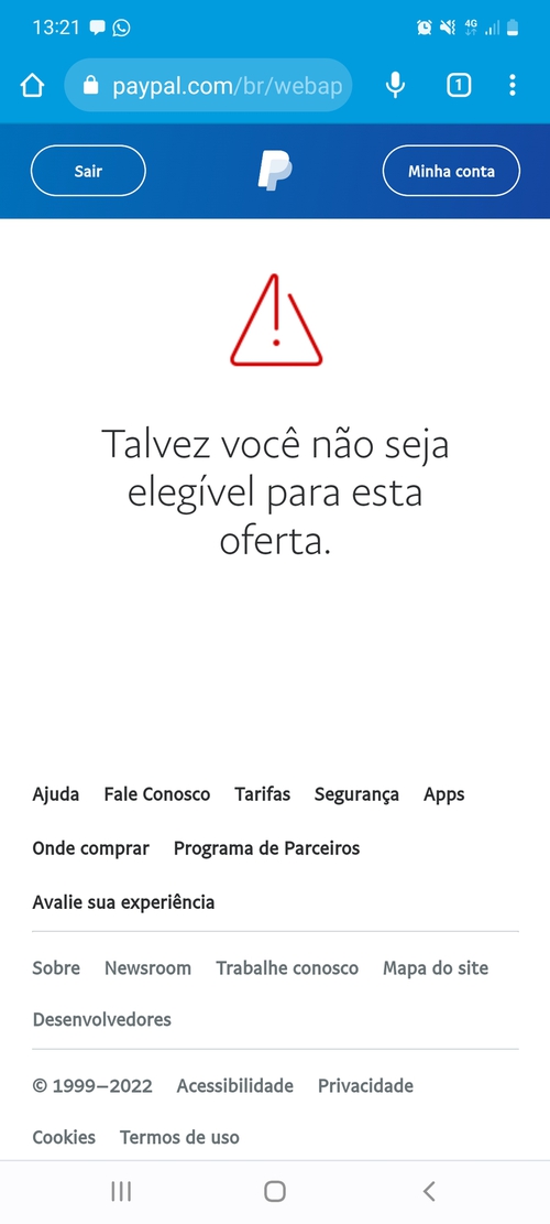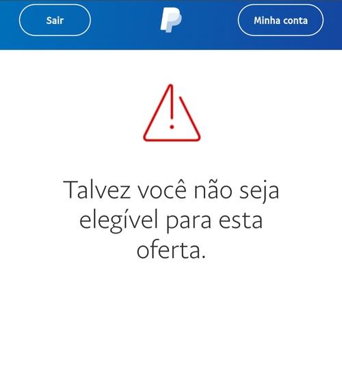 Talvez você não seja elegível para esta oferta. Me surpreenda Paypal.