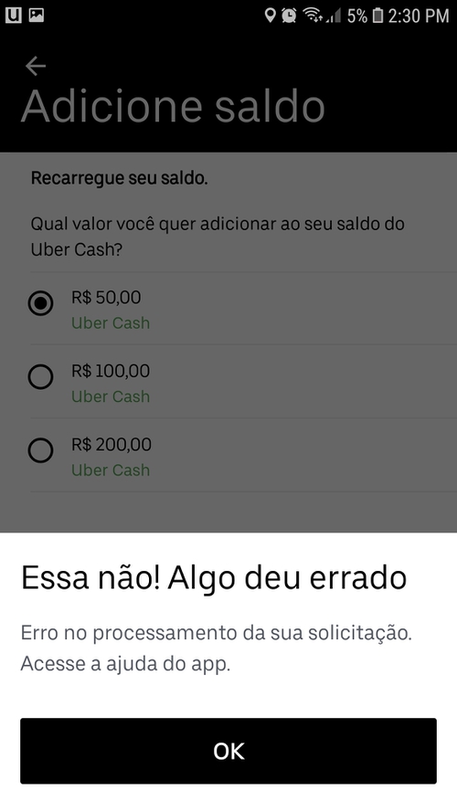 Não consigo add na carteira do uber . Fica dando algo estranho aconteceu. O cartão foi verificado e confirmado lá no paypal mas nem aparece mensagem nenhum de compra negada no cartão