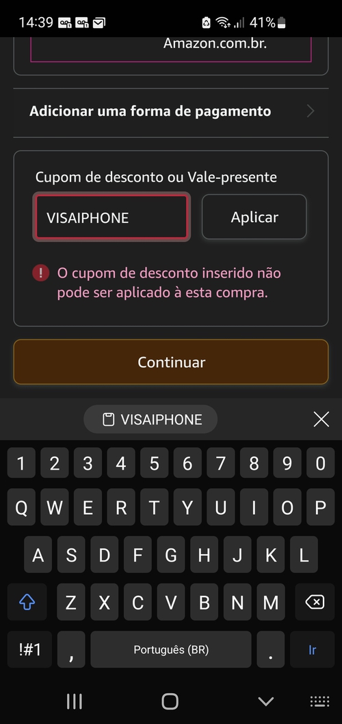 Cupom não entra, queria tanto pegar o azul!! 😭