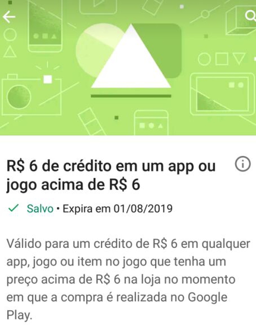 R$ 6 de crédito em um app ou jogo acima de R$ 6 [usuários selecionados]