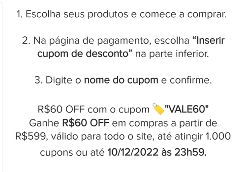 Enquanto isso.... Sigo aguardando o cupom de R$ 100 para compras acima de R$ 1000... Vem que vem fiii, estou te esperando.