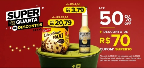 R$70 OFF em compras acima de R$249 em Mercado