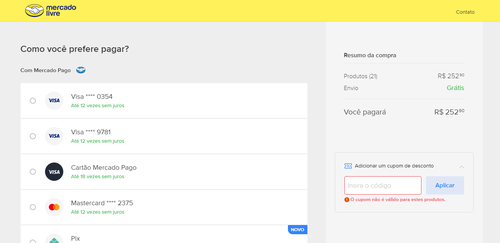 Cupom acabou