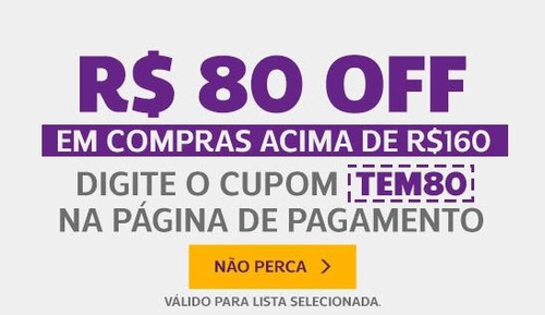 Ganhe R$ 80 OFF em compras acima de R$160 em lista selecionada na Netshoes usando o cupom TEM80.