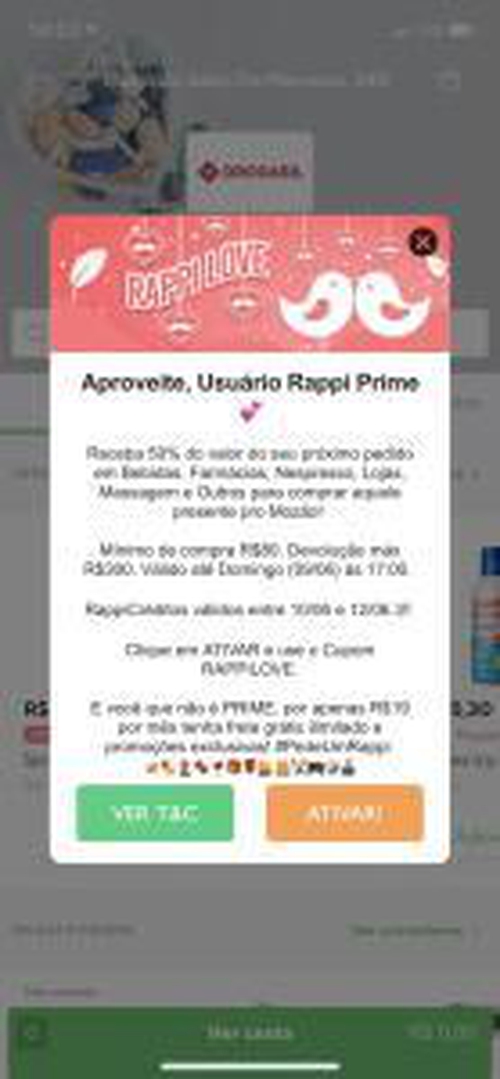 RappiCréditos disponíveis para uso entre o dia 10/06 às 06:00h até 23:59h do dia 12/05.