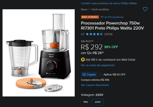 Lembrando que é 220v, acredito que nao tenha 110v, comprei e vi quando chegou