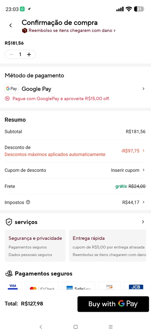 peguei por 142 por conta de ja ter usado o cupom de 15 reais do GPAY, será que ja tem o adaptador ?