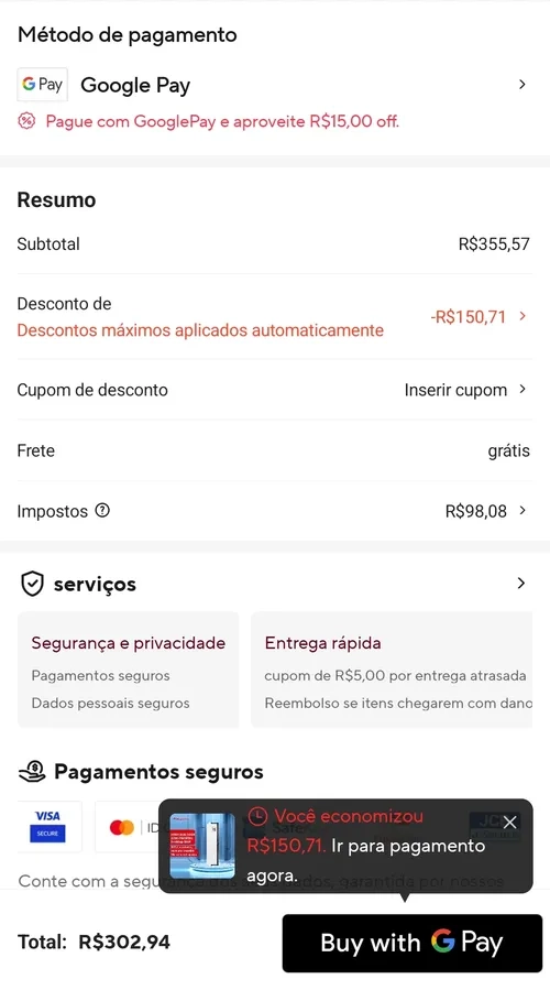Necessário escolher a opção 16GB x 2 para chegar no valor, além de pagar via google pay