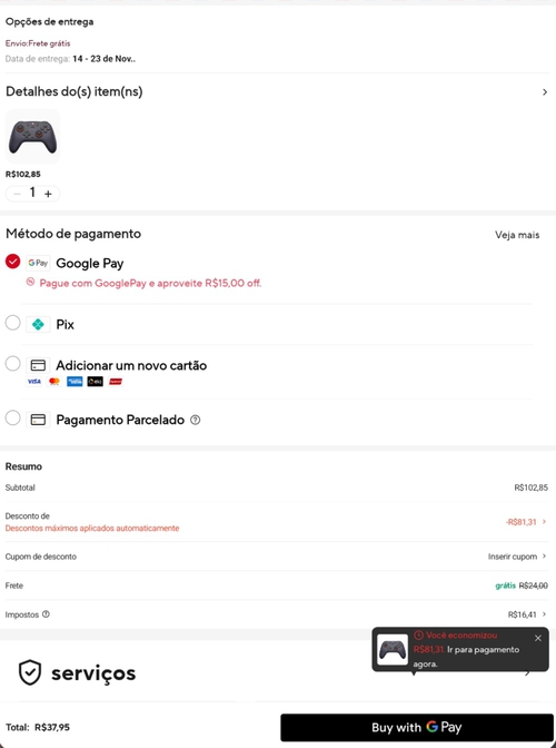 Nunca vou entender como esse povo consegue fazer milagre assim, nenhum cupom funciona aqui e nem o GPay aparece desconto mais (e sim eu já limpei cache e armazenamento) e pra piorar o meu imposto de importação é o triplo da screenshot ali