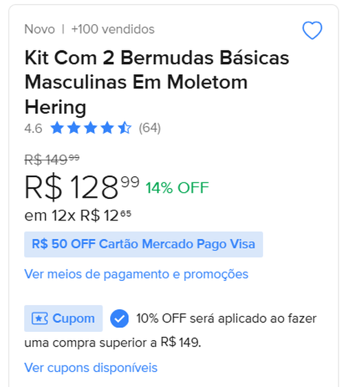 [R$ 45 cada] Kit Com 2 Bermudas Básicas Masculinas Em Moletom Hering