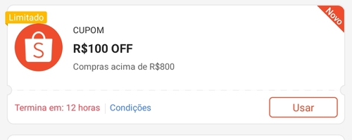 R$100 OFF ACIMA DE R$800 - Cupom Shopee