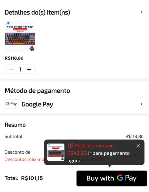 [R$101 "Moedas"/ TaxaInclusa] Machenike K500A-B84 Teclado Mecânico 75% TKL