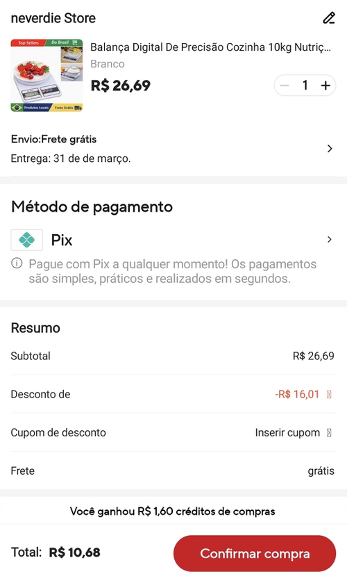 Eu tenho 2,5 dólares em moeda, equivalentes a algo próximo de 14 reais, mas ao simular a compra só desconta 1.33 reais..