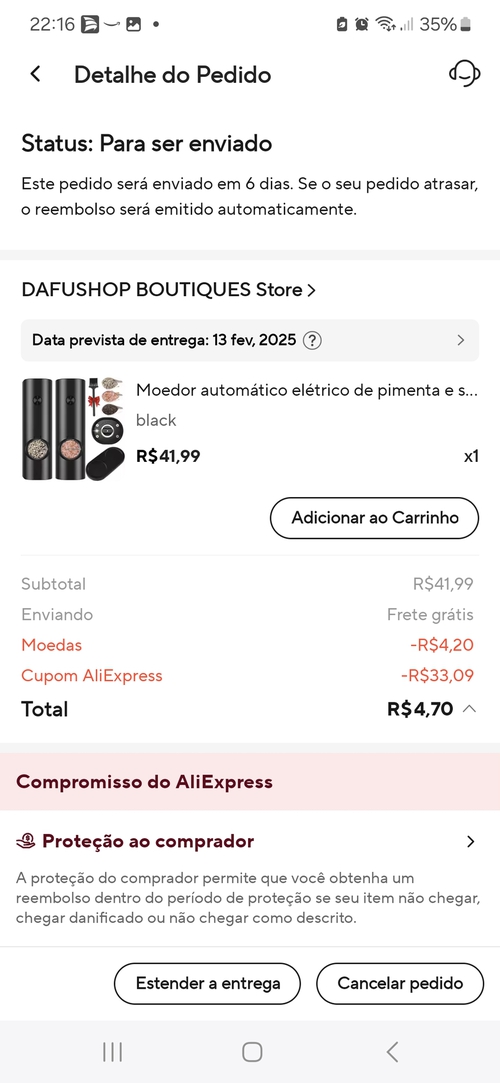bem, espero que me mandem o mesmo produto do anuncio dessa vez , a maioria dessas promoções do ali com moedas que o preço fica muito baixo me mandaram produtos inferiores , aí eu pedia reembolso parcial pq ir no correio fica mais caro do que o valor pago, as vezes para eles aceitarem tem que abrir reclamação no reclame aqui com foto do produto que recebeu e do anuncio, como o valor é baixo a maioria nao reclama para nao ter o trabalho de ir nos correios devolver, mas pode reclamar e pedir reembolso parcial