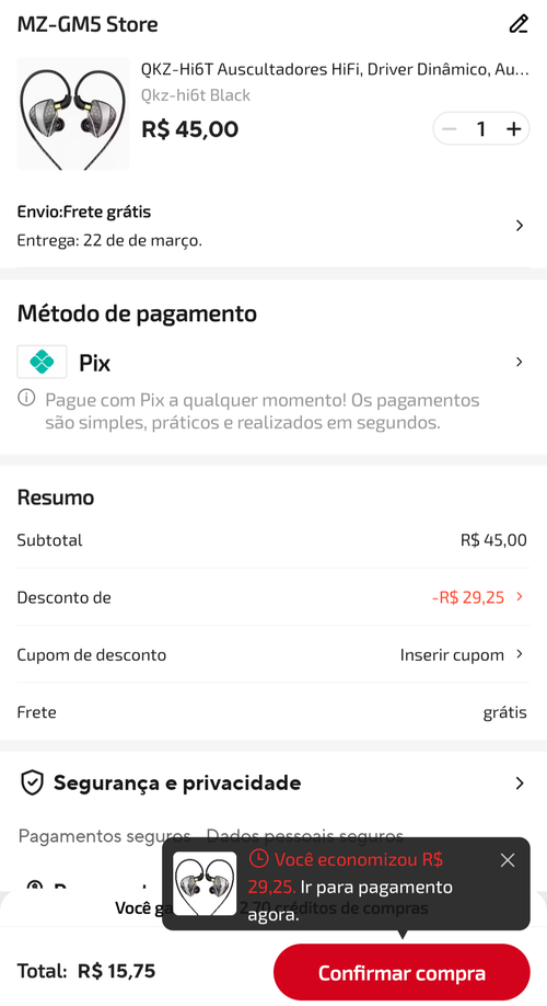 R$ aqui saiu por 10,86, usando moedas + um crédito q ganhei do ali.