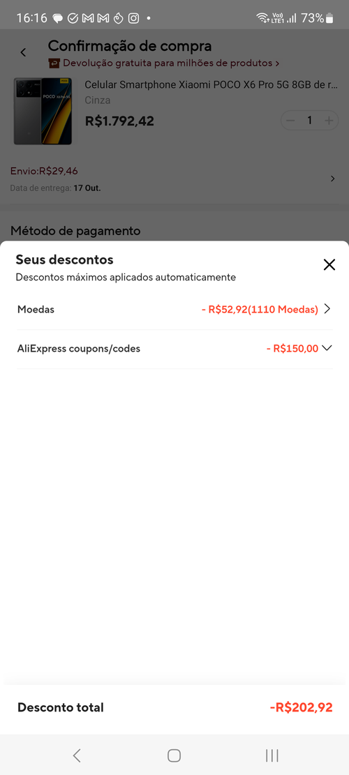 Consegui 01/10 na shope um 12gb/256gb usando um cupom de 90$ da plataforma mesmo total: RS 1600 ✌🏻