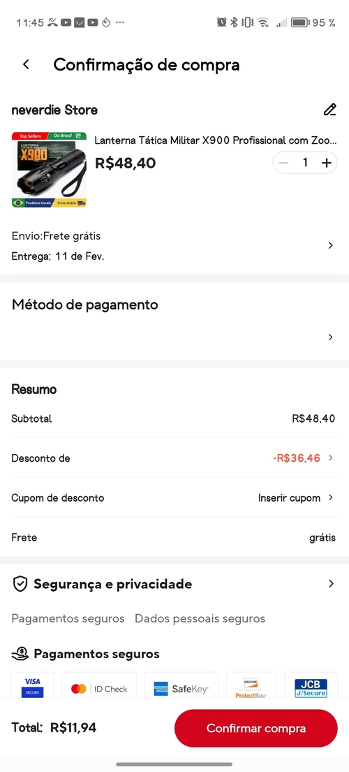 Não consigo entender essas promoções. To com 1723 moedas e aplicou um desconto de R$2,42 kkkkkkkkkkk, total de R$45,98...