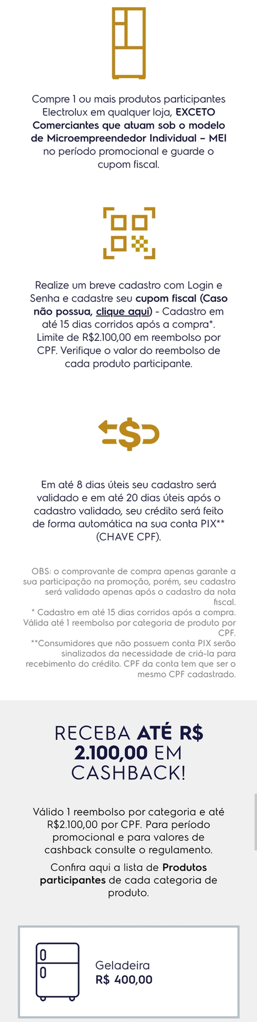 A promocao da electrolux é bem pega trouxa, vc compra ai tem uns dias pra mandar a nf, quando vc mandar ainda dentro desses dias vao dizer que acabou o dinheiro da campanha