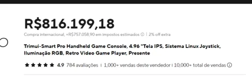 [R$219,32 MOEDAS/Taxa Inclusa/GPay] Console de Jogos Portátil Trimui Smart Pro 128GB, Tela IPS, Iluminação LED, Videogame Retro ,+ 26 Emuladores