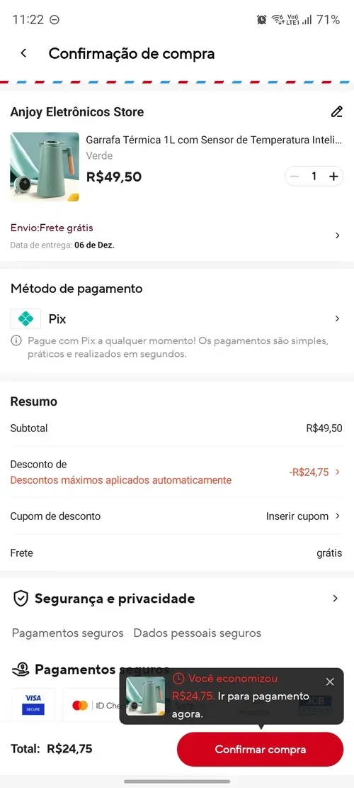 Para chegar ao preço de R$24,75 é preciso ter 518 moedas Aliexpress.