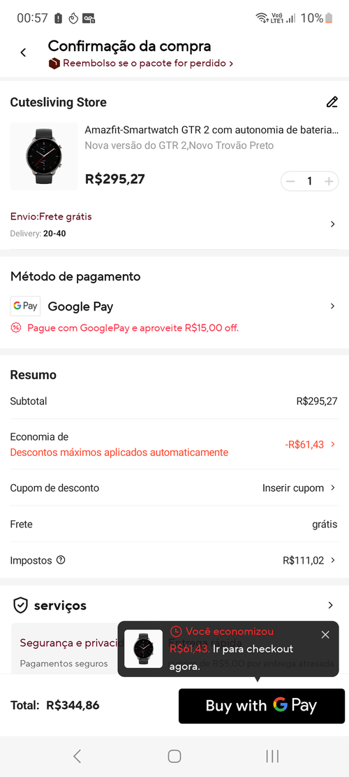 queria o GTS 2 nesse valor, possível? tentei com esses cupons e ficou 396 no máximo (primeiro cupom não rolou)