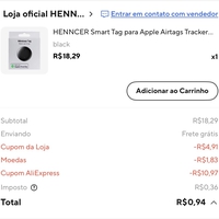 [R$3.72 Moedas/APP] Smart Tag Henncer de Localização compatível Apple Find My - iPhone, iPad e MAC