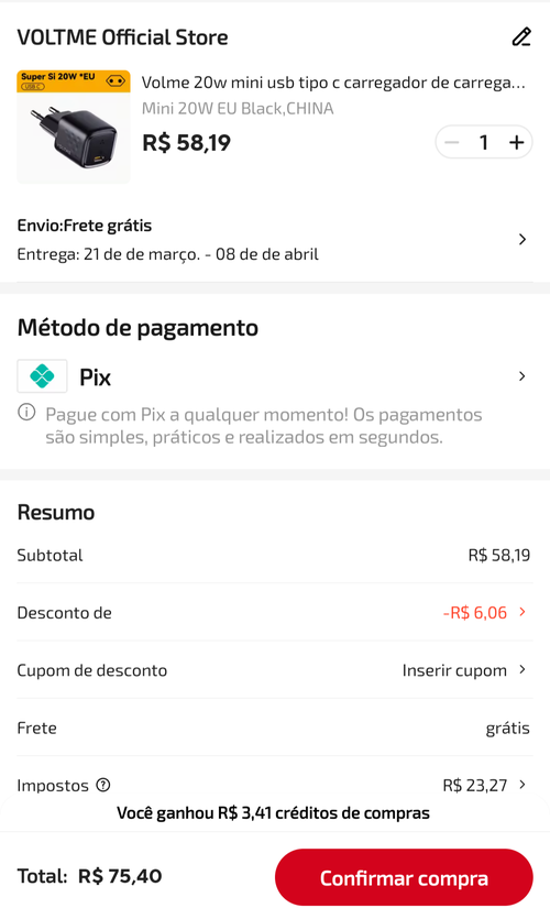 Última compra aque fiz no ali, que ficou nessa valores baixos, foi negado pela aduaneira, disse que o valor estava abaixo do normal, para evitar pagamento de imposto.