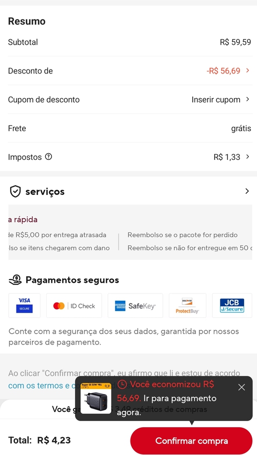 Aqui, pela aba moedas, o desconto fica 75% e não 88% e com o cupom sai por 12 reais. Frete grátis.