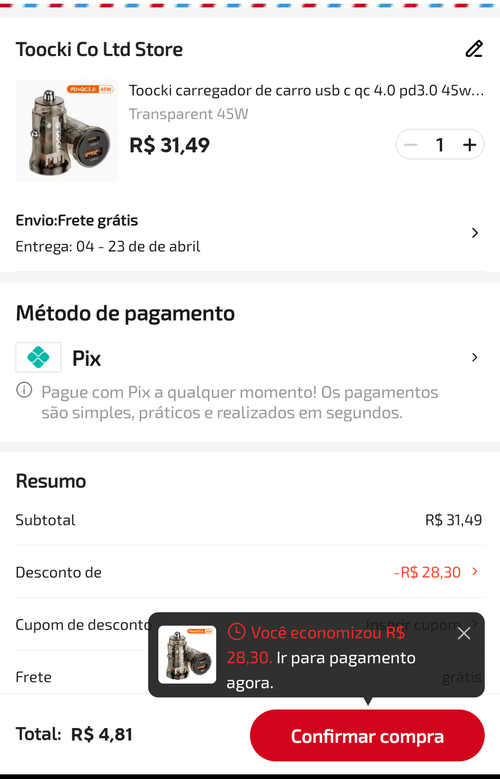- R$4,81 usando 546 moedas