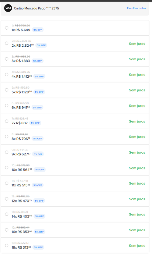R$5199. com cupom de R$200,00 + 15% OFF pagando no cartão do ML, em até 16x sem juros