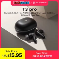 [R$55 Moedas/APP] Fone de Ouvido SoundPEATS T3 Pro com Cancelamento de Ruído - Bluetooth 5.4, Drivers de 12mm, 28h bateria, IPX4