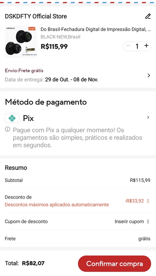 [R$82 MOEDAS] Fechadura Maçaneta Digital Inteligente com Bloqueio por Chave, Biometria e APP