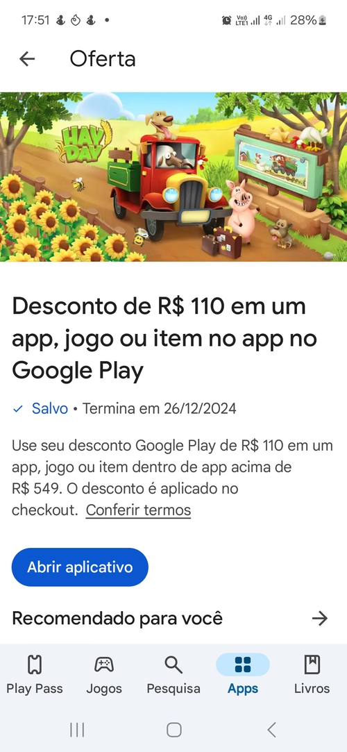 Ganhei um cupom de 110 para compras acima de 549... Quem que gasta 549 no Google play?