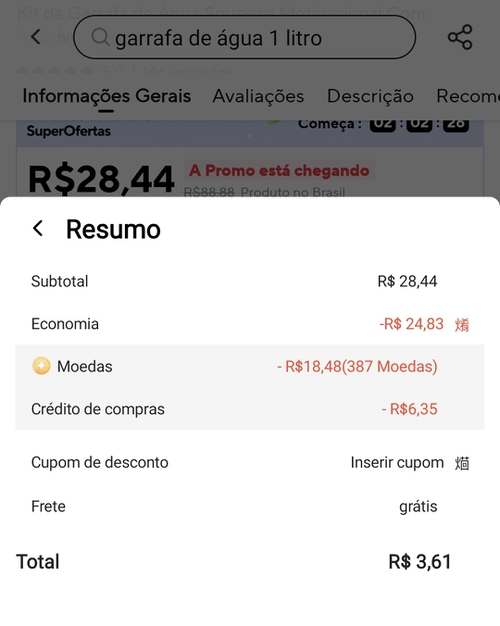 [R$9,96 MOEDAS][BR]Kit 3 Garrafas de Água Squeeze Motivacional Com Adesivos 300ML+900ML+2000ML