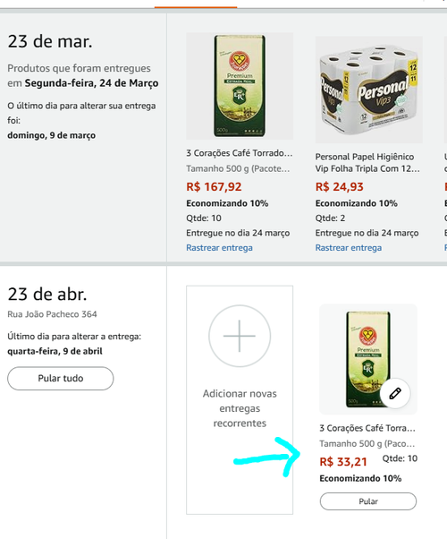 Mesmo com a entrega recorrente e o + po - aqui não chega nesse valor