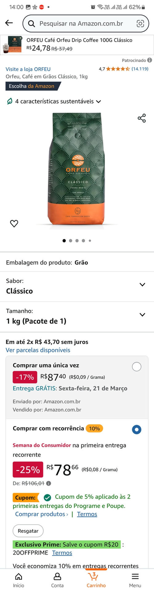 Como falei em outra promoção, 1KG pra quem não tem um bom armazenamento (como vacuo), o café fica muito velho e perde cheiro/sabor.