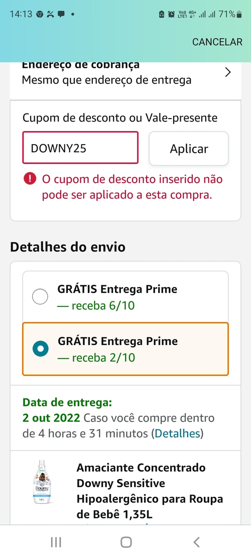 CUPOM NÃO ESTÁ FUNCIONANDOCupom inválido.