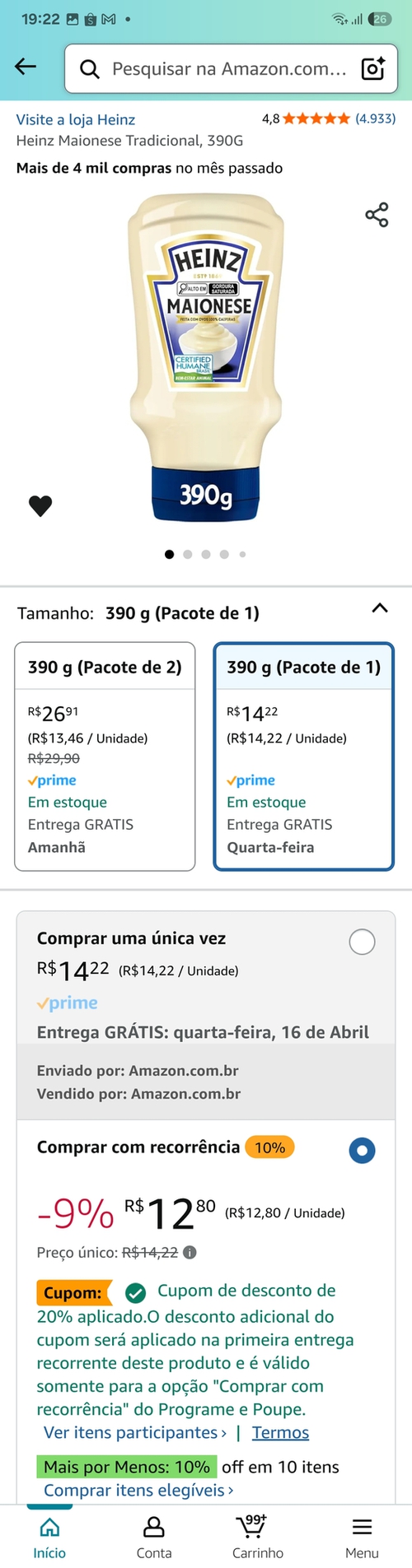 Comprei 5. Curiosamente, comprando 6, o preço mudava um pouquinho (para mais). Com 7, voltava para 9,95.