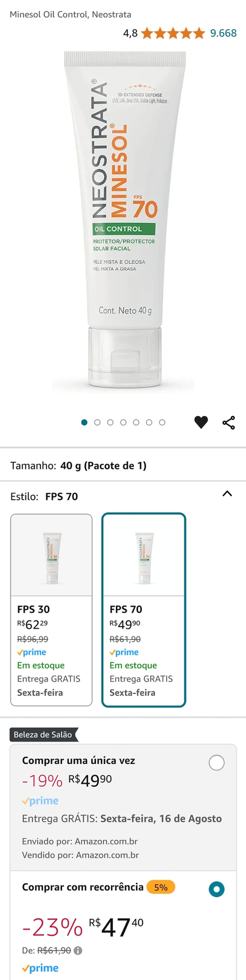 Excelente preço, melhor protetor solar que já usei, uso ele desde da época do Minesol roc