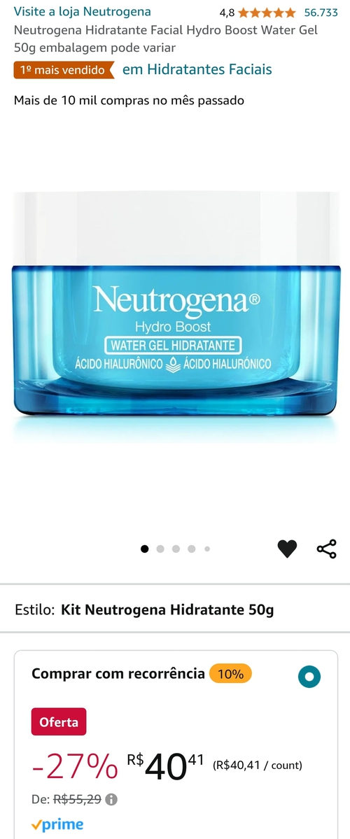 [Rec] Neutrogena Hidratante Facial Hydro Boost Water Gel 50g embalagem pode variar