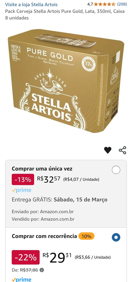 [Rec] Pack Cerveja Stella Artois Pure Gold, Lata, 350ml, Caixa 8 unidades