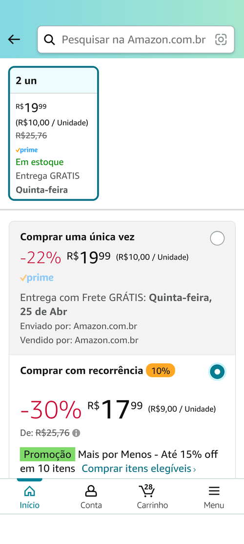 Para chegar no valor de r$17,99 é necessário ser cliente para ele e selecionar a opção de recorrência.