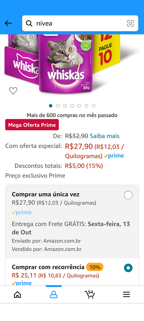 [REC] Ração Úmida Whiskas Sachê Carne ao Molho para Gatos Adultos - Leve 12 Pague 10