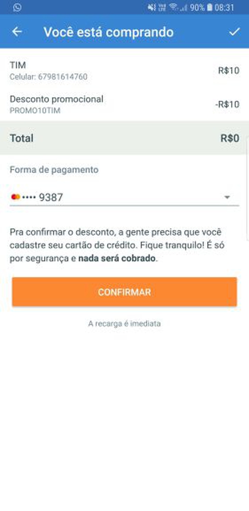 [RecargaPay] R$20 de crédito para qualquer operadora via Recargapay (DOIS CUPONS DE 10)