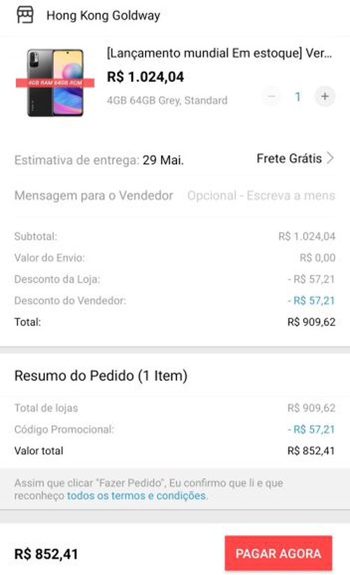 Redmi Note 10 5G - NFC | R$ 852