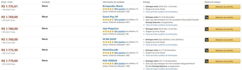 Todos os vendedores da Amazon estão na faixa dos 1700 (y)