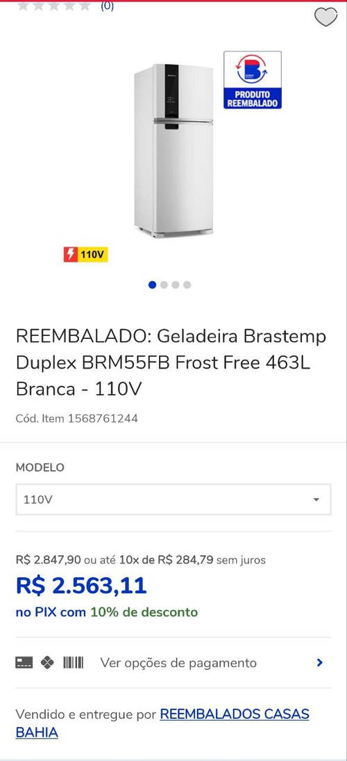 [REEMBALADO] Geladeira Brastemp Duplex BRM55FB Frost Free 463L Branca - 110V